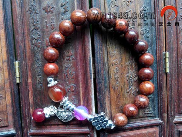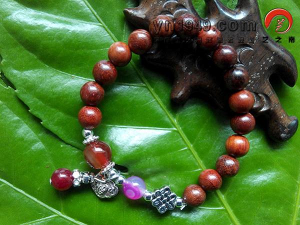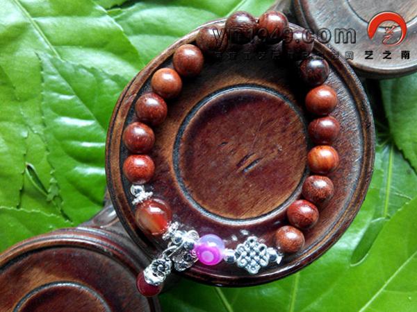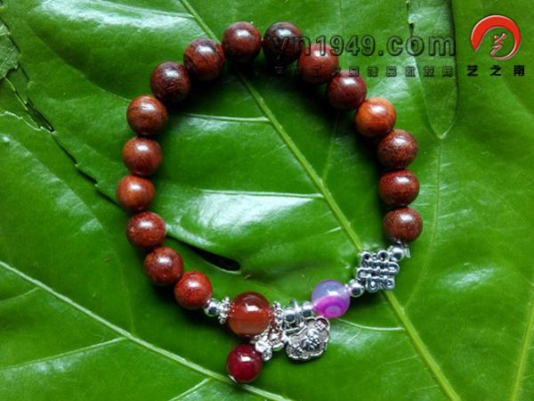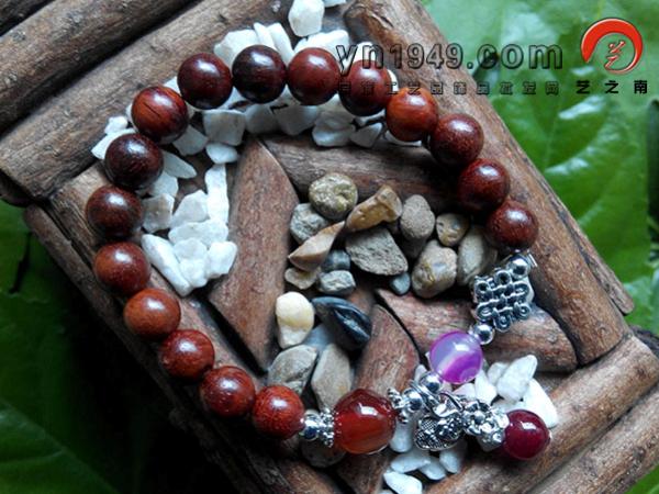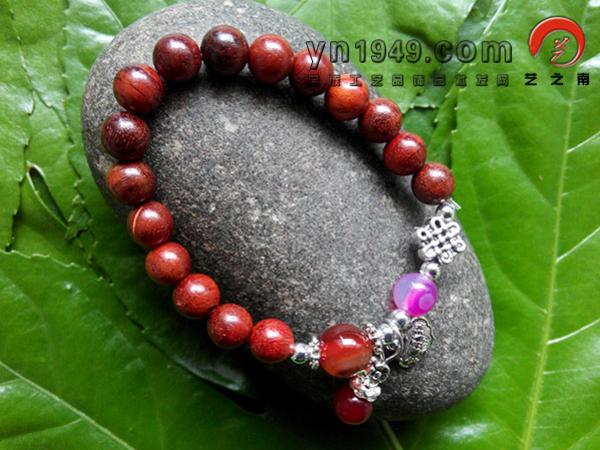 材料:红檀木珠、玛瑙、仿苗银、米珠