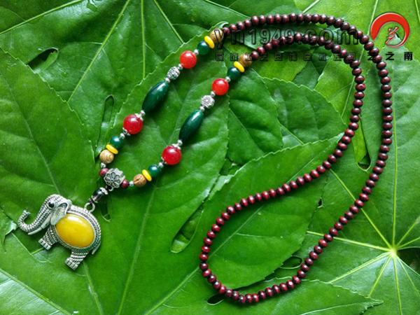 材料:红檀木珠、玛瑙、仿蜜蜡、米珠