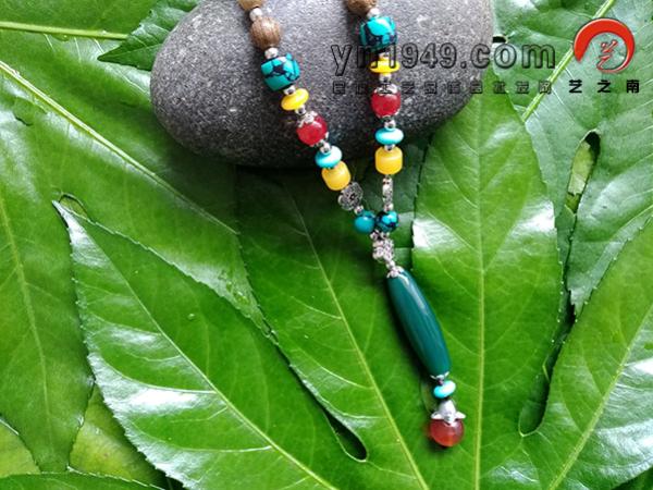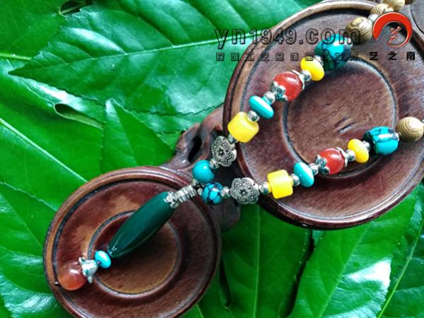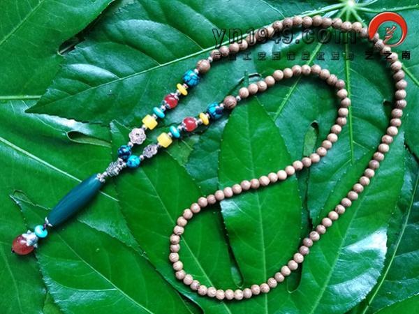 材料:鸡翅木、玛瑙、仿苗银、松石、米珠、仿蜜蜡