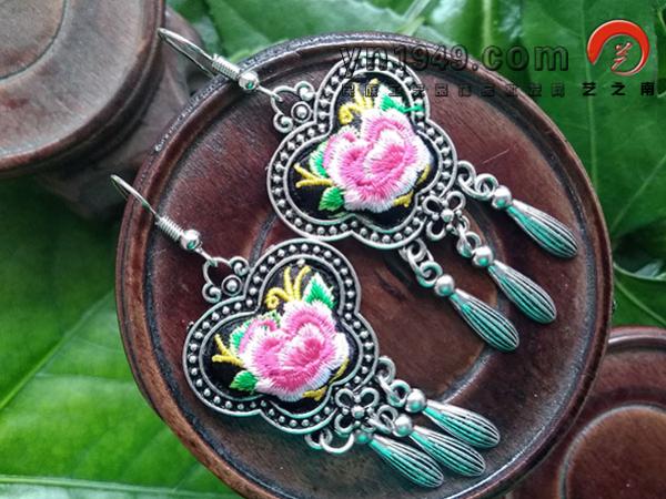 产品名称: 苗银绣花耳环   产品编号: B16412