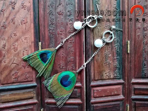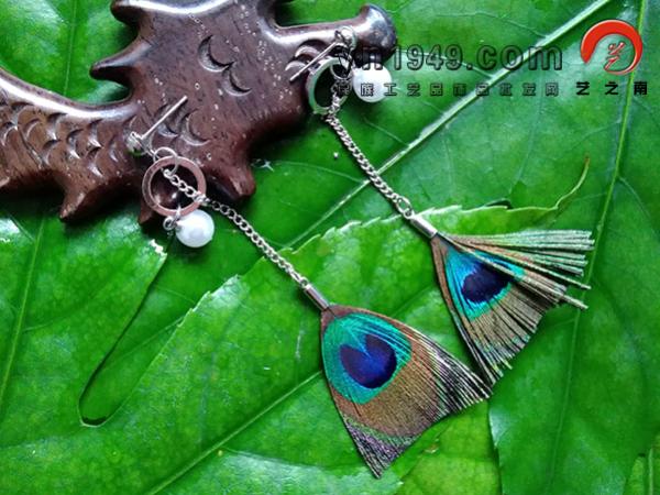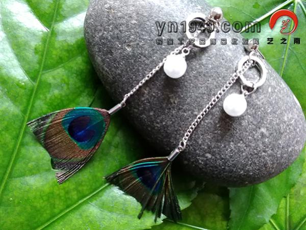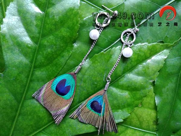 名称:孔雀羽毛耳环