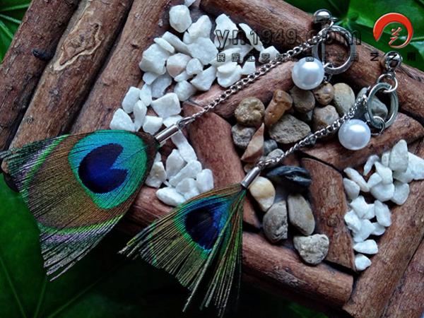 材料:孔雀羽毛、仿苗银、链子、仿珍珠