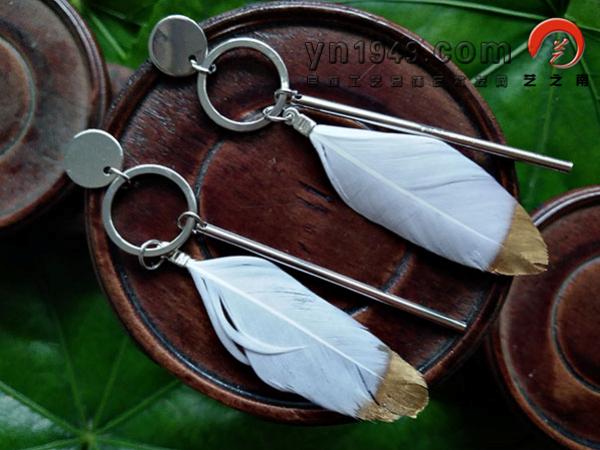 材料:孔雀羽毛、仿苗银