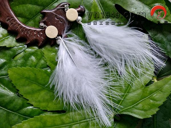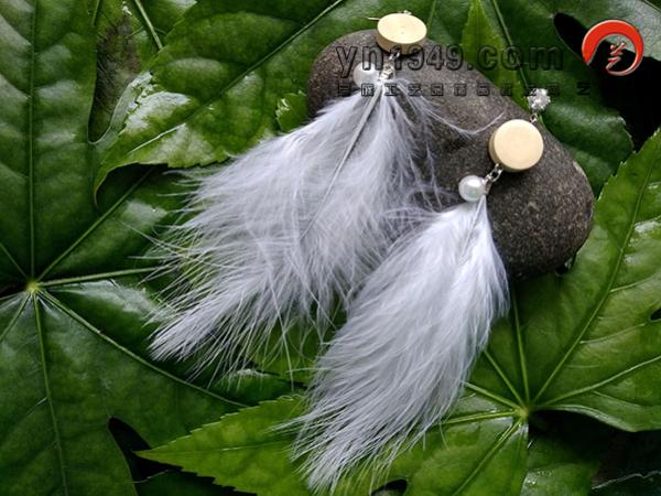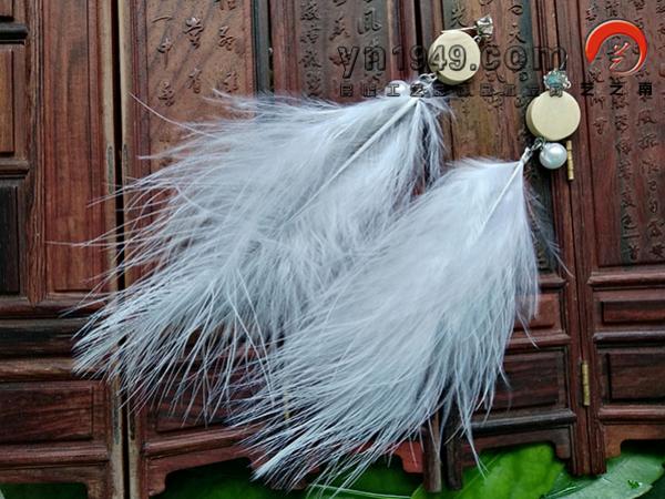 材料:孔雀羽毛、仿珍珠、木珠、水钻、仿苗银