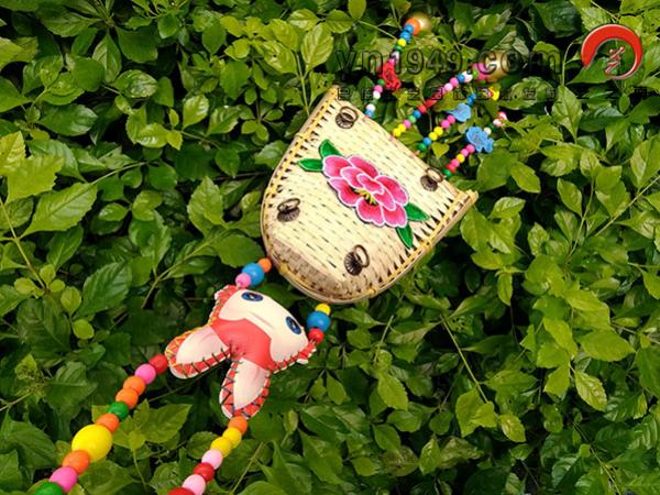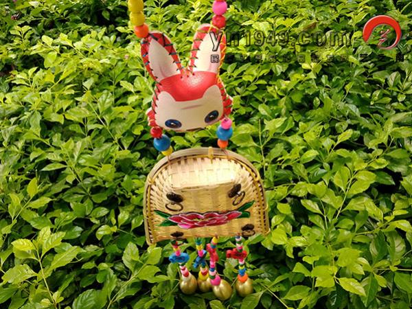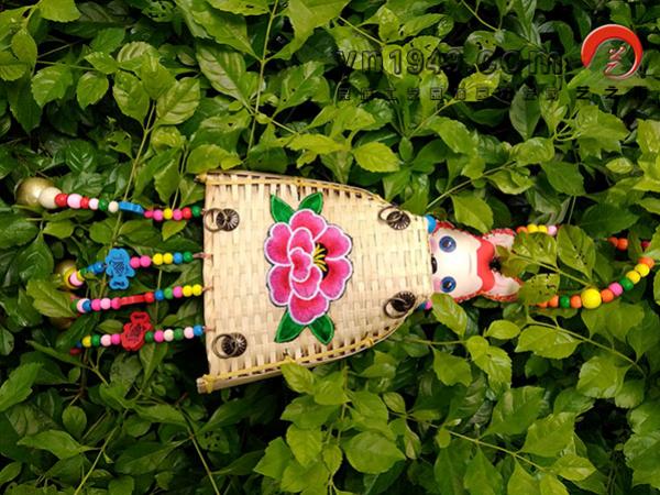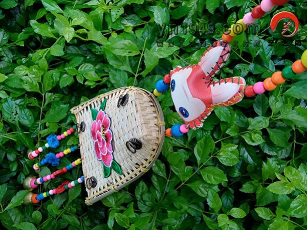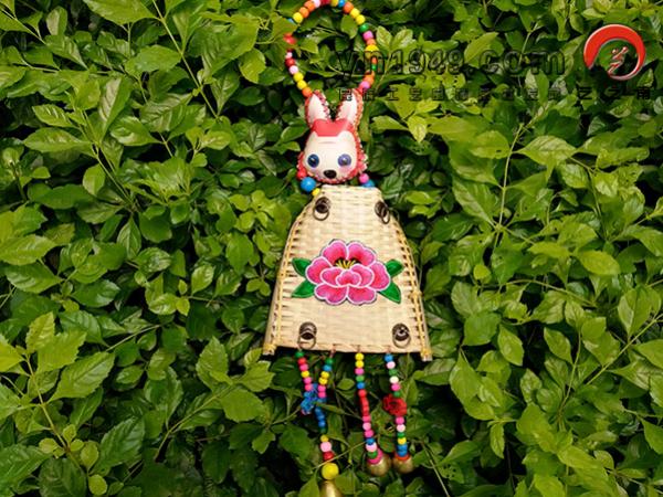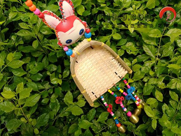 材料:竹编、绣花、彩绘皮、彩色木片、彩色木珠、4个铜铃