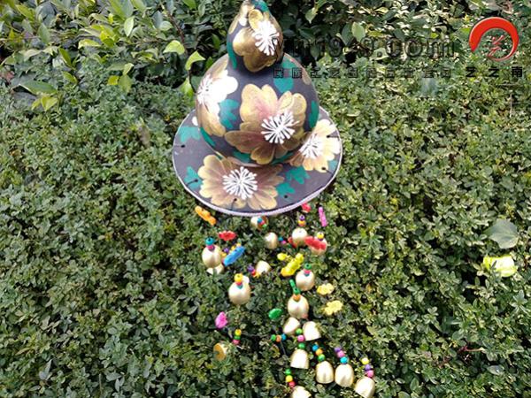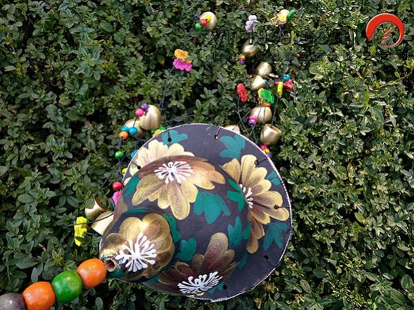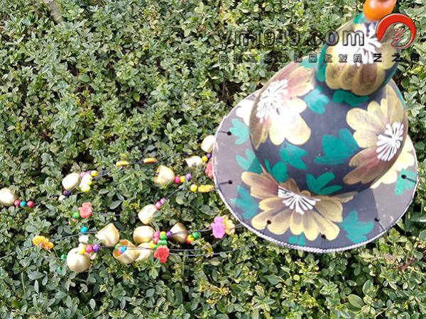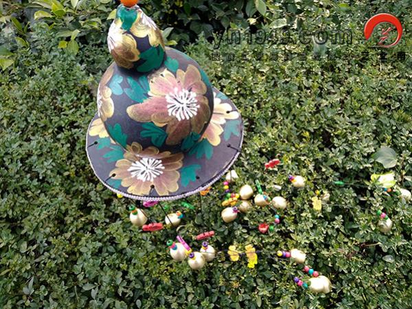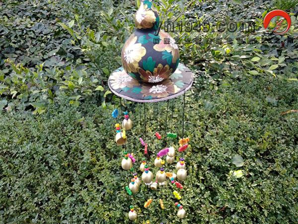 材料:彩绘葫芦、彩绘木板、20个铜铃、彩色木珠