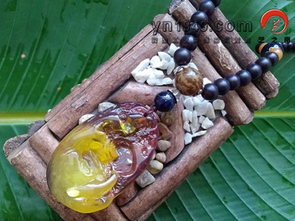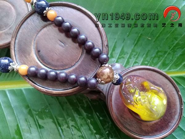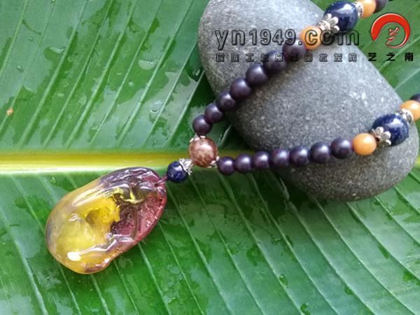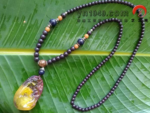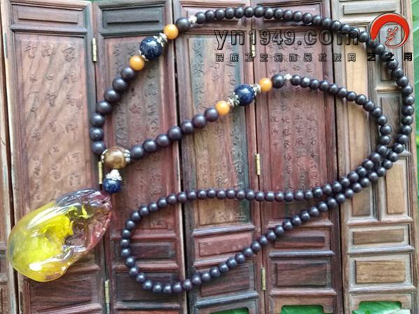 材质:仿蜜蜡、黑檀木珠、蓝沙石