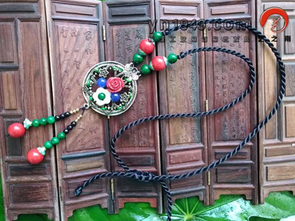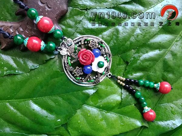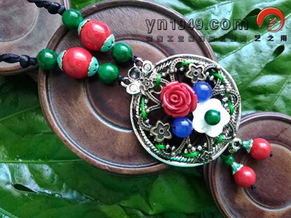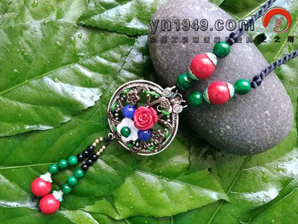 材质:松石、漆雕花、贝壳、手编蜡线、仿苗银、米珠