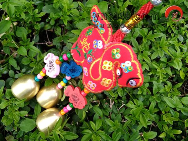材料:绣花布艺、彩色木珠、彩色木片、铜铃