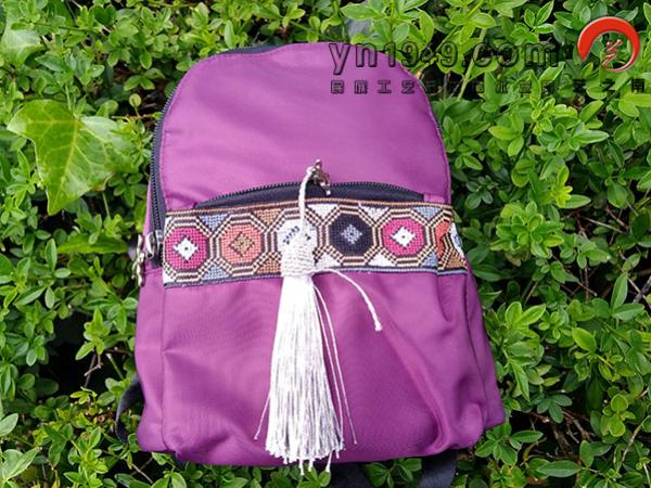 描述:民族特色、做工精致,款式独特、美观大方、时尚。既可以双肩可以手提。