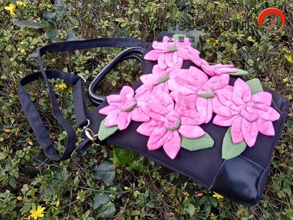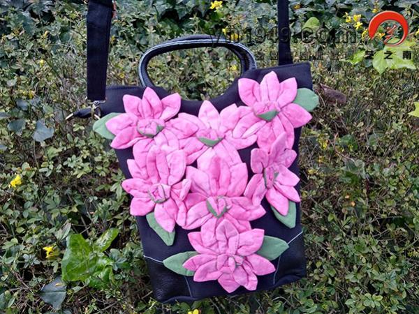 产品名称: 皮革花朵斜挎包   产品编号: F10819