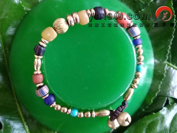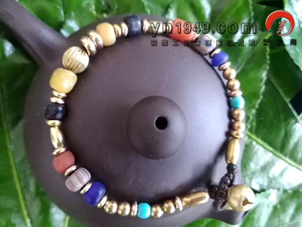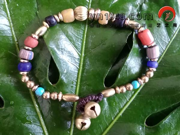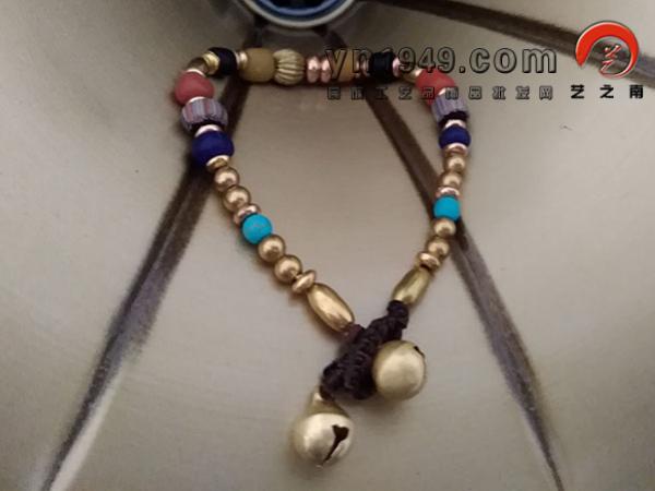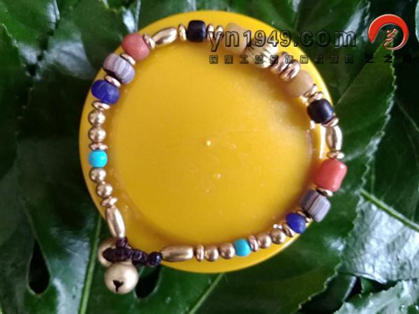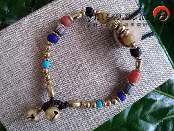 材料:手编蜡线、玛瑙、松石、铜珠、铃铛