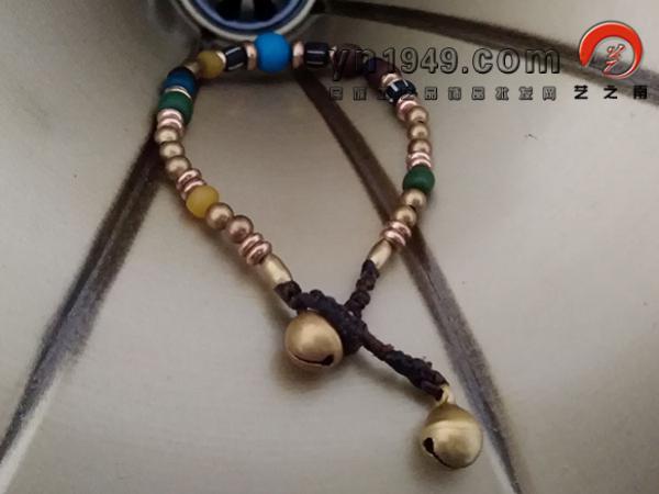 材料:手编蜡线、玛瑙、松石、铜珠、铃铛
