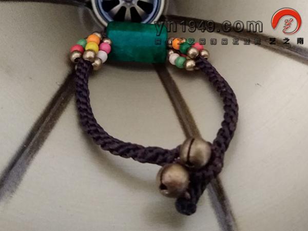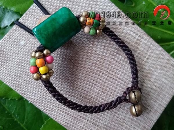 材料:手编蜡线、松石、铜珠、铃铛