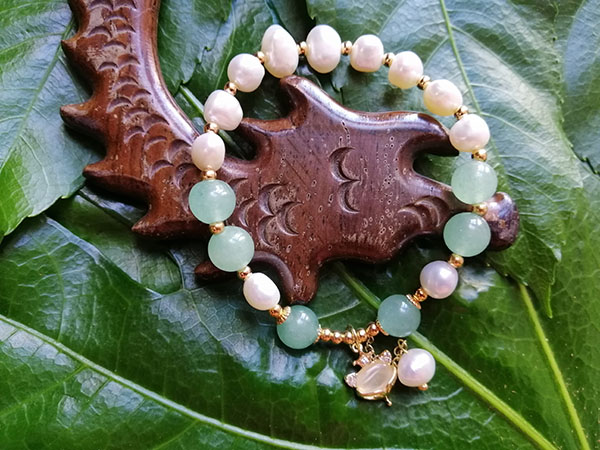 材料:天然珍珠、东陵玉、猫眼、米珠