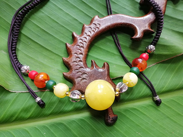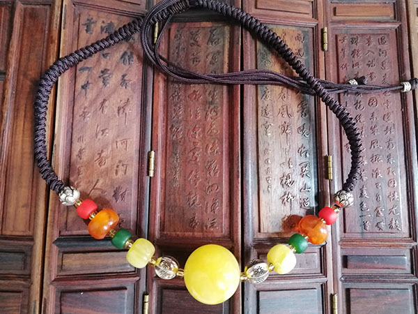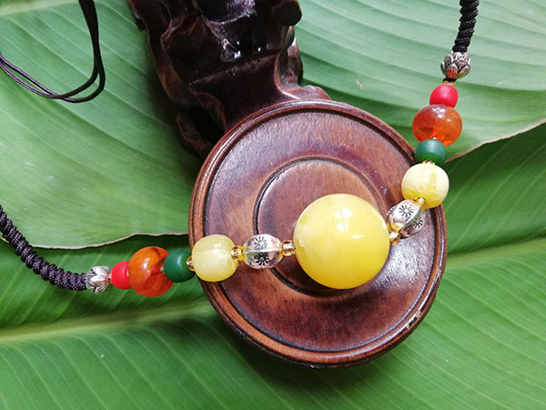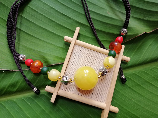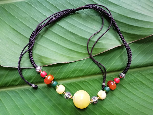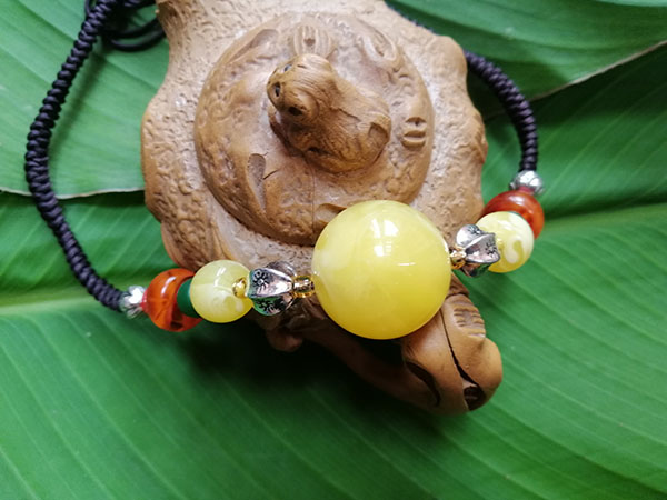 材料:仿古银、蜜蜡、蜡线、玛瑙