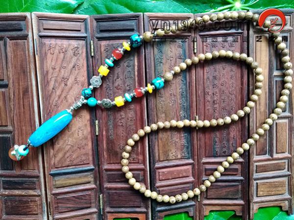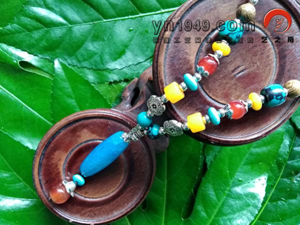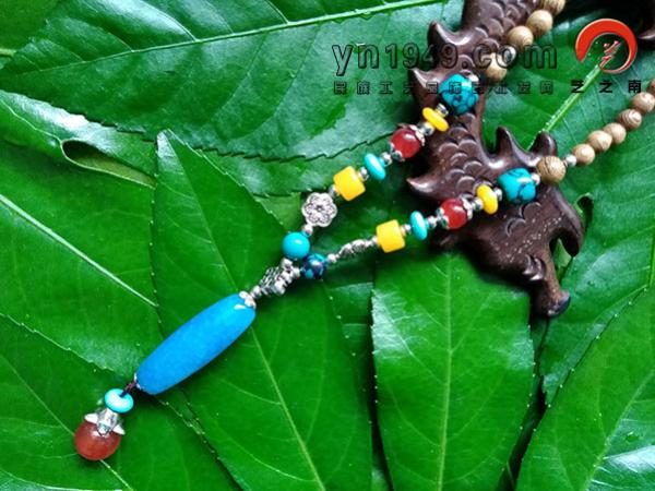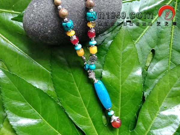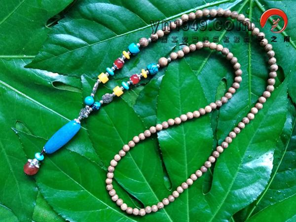 材料:鸡翅木、玛瑙、仿苗银、松石、米珠、仿蜜蜡