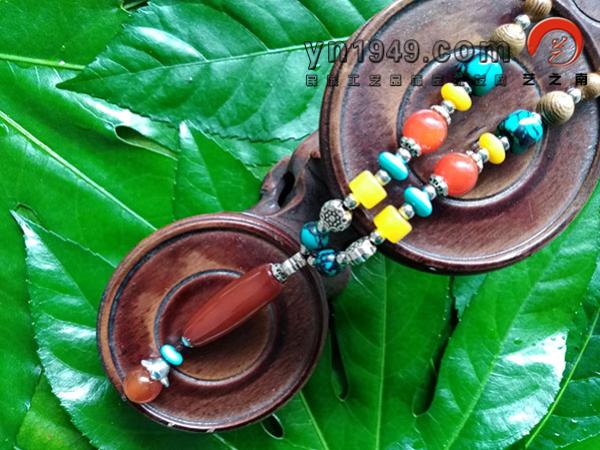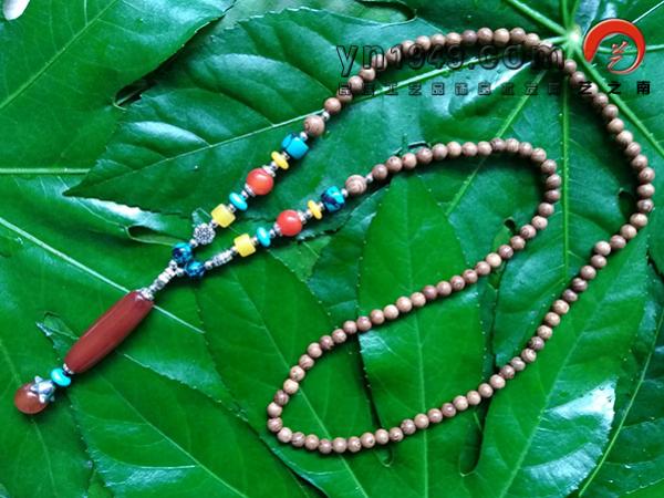 材料:鸡翅木、玛瑙、仿苗银、松石、米珠、仿蜜蜡