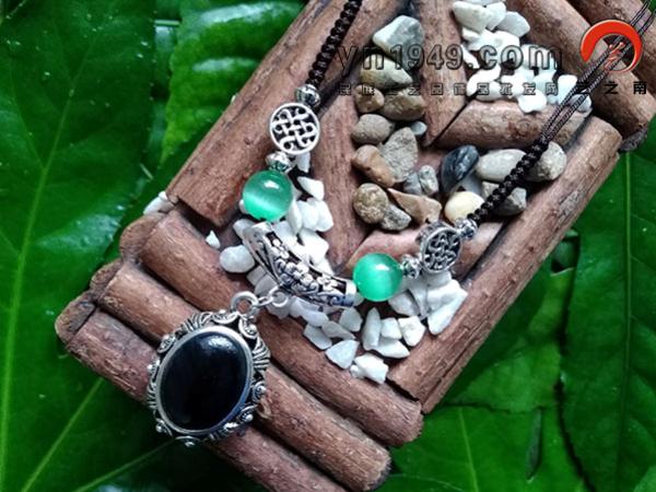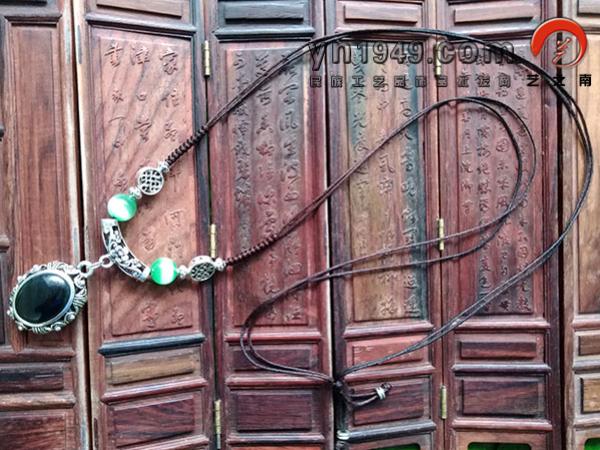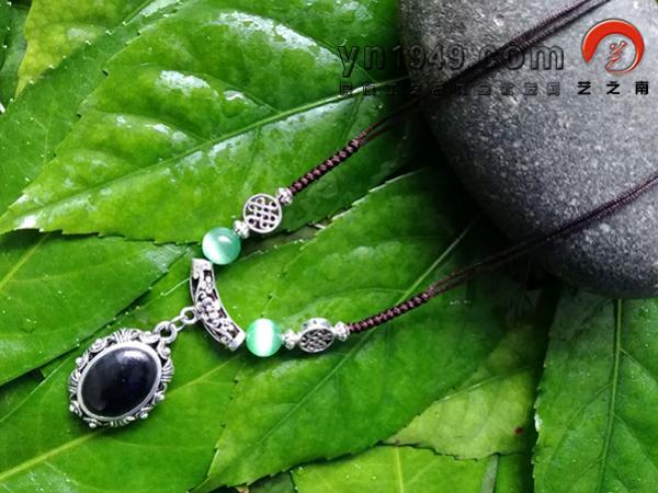 材料:仿苗银、玛瑙、猫眼石、手编线