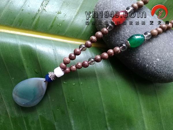 材料:鸡翅木珠、玛瑙、仿蜜蜡、水晶、米珠、仿苗银、松石