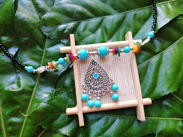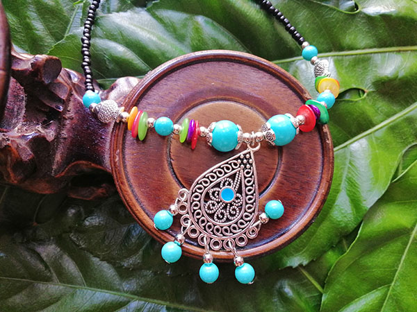 材料:松石、贝壳、树脂、银、铝、铜、铅、镍